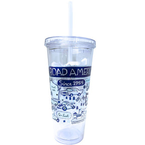 A 20 oz double wall acrylic tumbler with threaded lid and matching soft straw.
