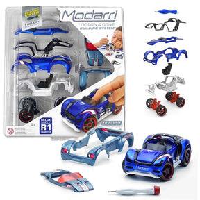 Design, build, and drive a sport roadster with this set. Package includes a hex tool, metal frame, 2 hoods, 2 fenders, seat, chassis, front and rear suspension and 4 wheels.